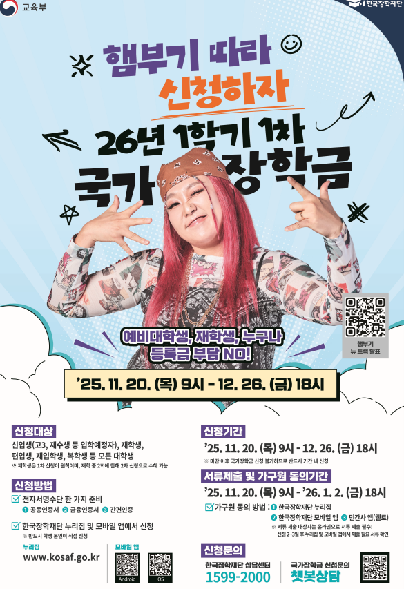 [공지] 2026-1학기 국가장학 1차 신청 안내 (11/20~12/26)