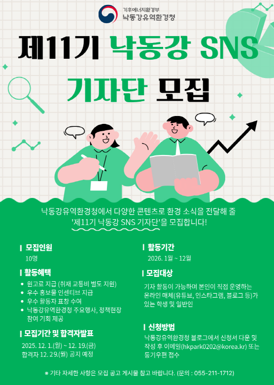 '26년 제11기 낙동강 SNS 기자단 모집 안내
