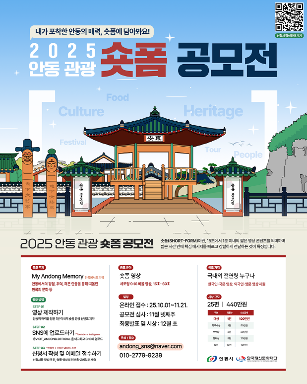 다. 문의사항: 2025 안동관광 숏폼 공모전 사무국 010-2779-9239